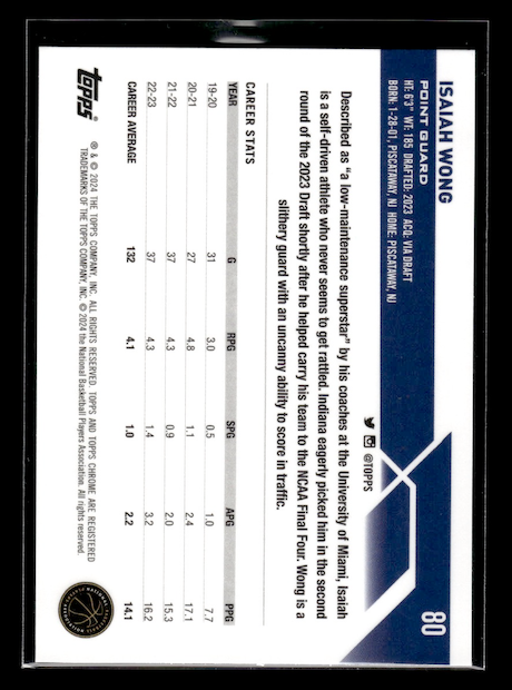 2023-24 Topps Chrome #80 Isaiah Wong Rookie (Indiana Pacers)