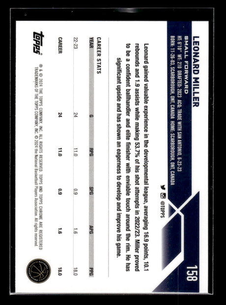 2023-24 Topps Chrome #158 Leonard Miller Rookie (Minnesota Timberwolves)