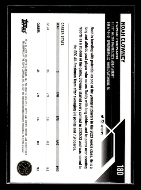 2023-24 Topps Chrome #180 Noah Clowney Rookie (Brooklyn Nets)
