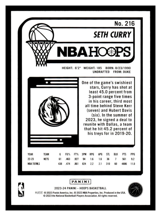 2023-24 NBA Hoops #216 Seth Curry (Dallas Mavericks)
