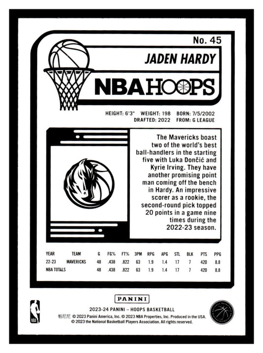 2023-24 NBA Hoops #45 Jaden Hardy (Dallas Mavericks)