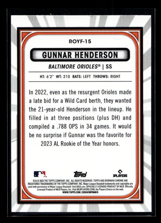 2023 Bowman Chrome Mega Box Rookie of the Year Favorites #ROYF15 Gunnar Henderson (Baltimore Orioles)