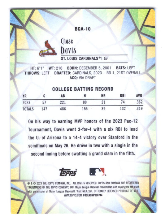 2023 Bowman Chrome Draft Chase Davis Stained Glass #BGA-10 (Cardinals)