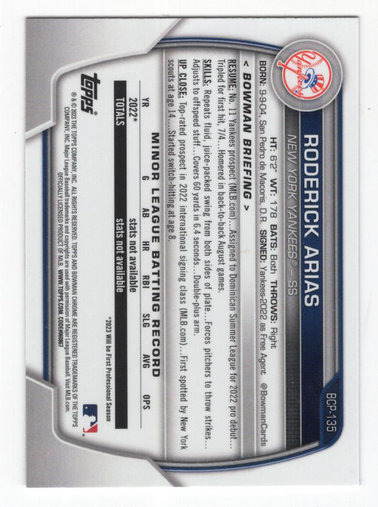 2023 Bowman Chrome Prospects Mega Mojo #BCP-135 Roderick Arias (Yankees)