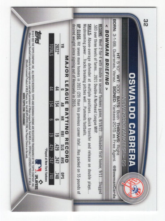 2023 Bowman Chrome Prospects Mega Mojo Rookie Card #32 Oswaldo Cabrera (Yankees)