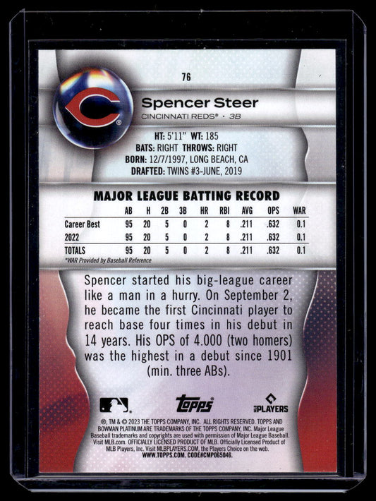 2023 Bowman Platinum #76 Spencer Steer Rookie RC (Cincinnati Reds)