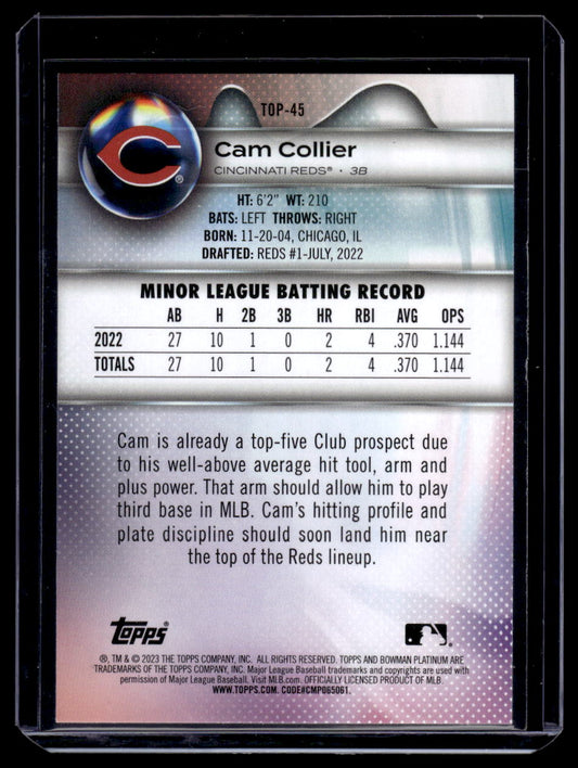 2023 Bowman Platinum Top Prospects #TOP-45 Cam Collier (Cincinnati Reds)