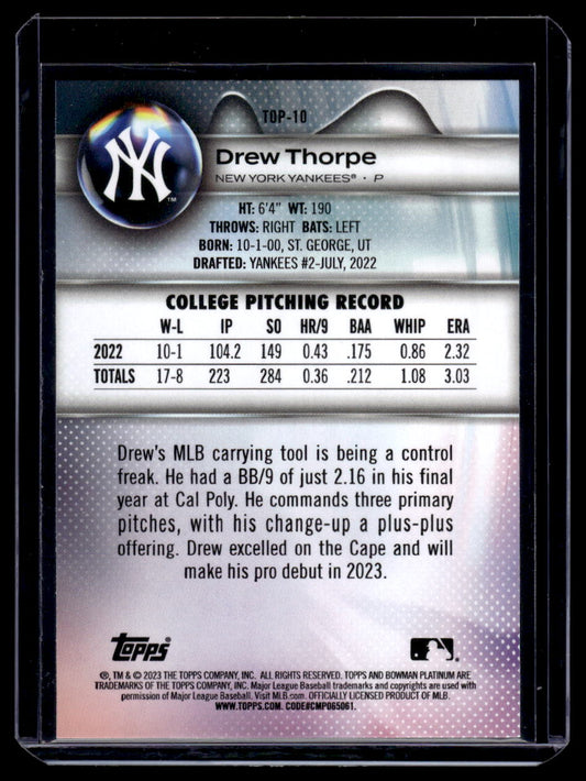 2023 Bowman Platinum Top Prospects #TOP-10 Drew Thrope (New York Yankees)
