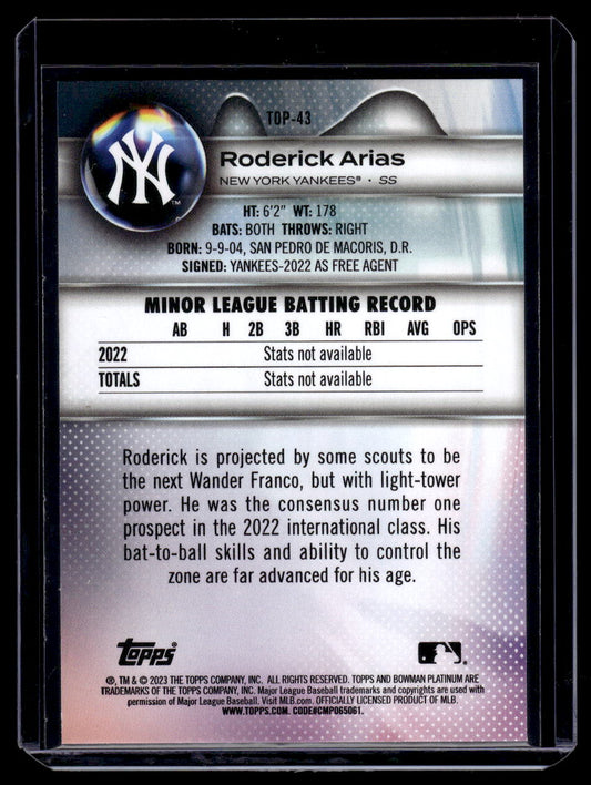 2023 Bowman Platinum Top Prospects #TOP-43 Roderick Arias (New York Yankees)