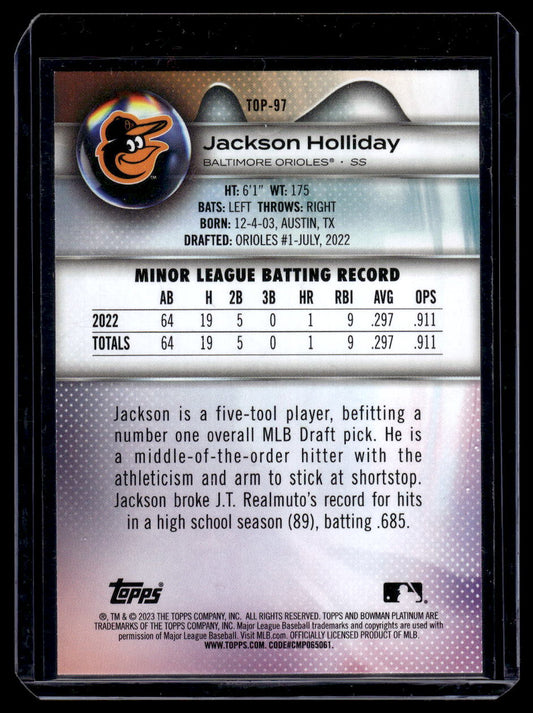 2023 Bowman Platinum "Top Prospects #TOP-97 Jackson Holiday (Baltimore Orioles)