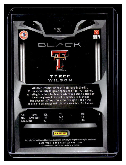 2023 Panini Chronicles Draft Picks Panini Black #20 Tyree Wilson (Texas Tech)