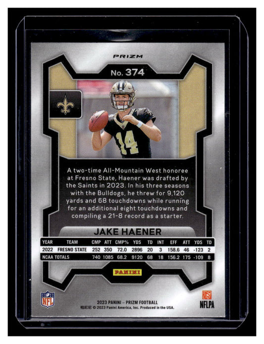 2023 Panini Prizm "Orange Disco" #374 Jake Haener Rookie RC (New Orleans Saints)