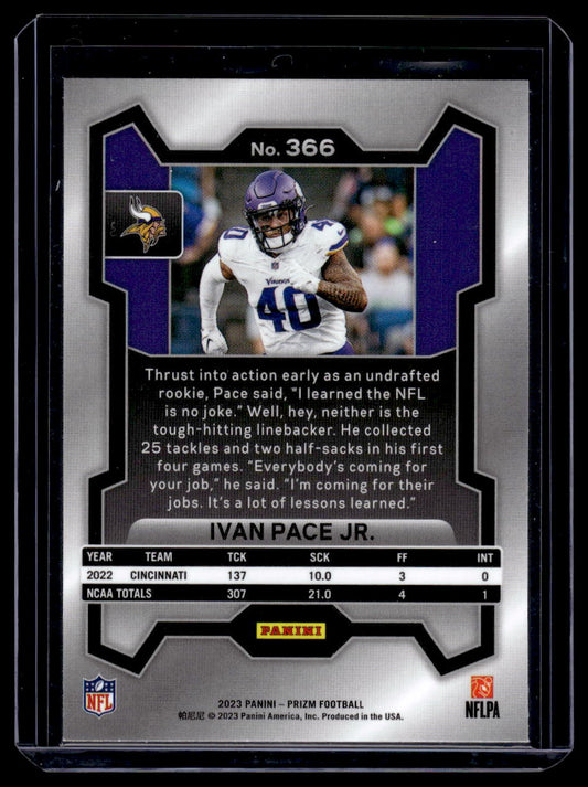 2023 Panini Prizm #366 Ivan Pace Jr. Rookie RC (Minnesota Vikings)