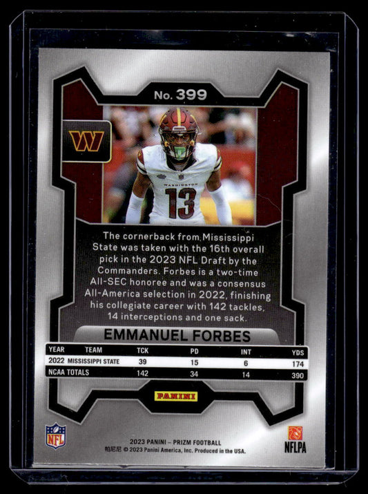 2023 Panini Prizm #399 Rookie RC Emmanuel Forbes (Washington Commanders)