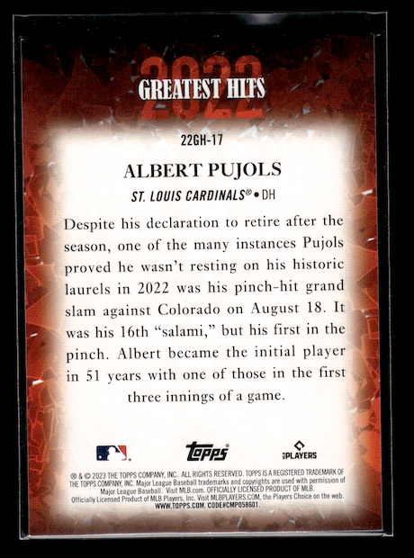 2023 Topps '22 Greatest Hits #22GH17 Albert Pujols (St. Louis Cardinals)