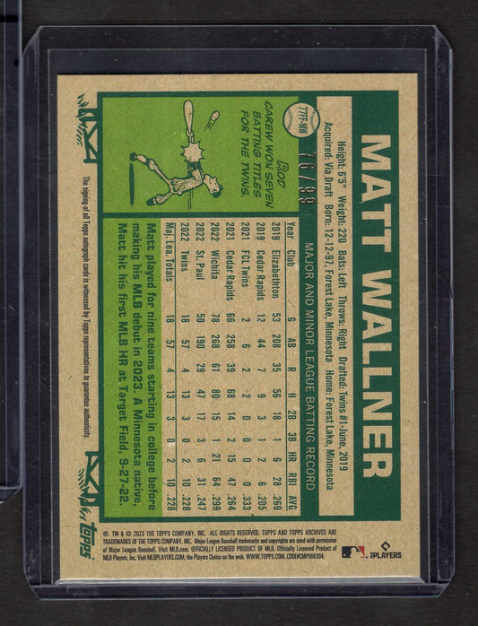 2023 Topps Archives #77FF-MW Matt Wallner Green Foil Autograph #' /99 (Minnesota Twins)