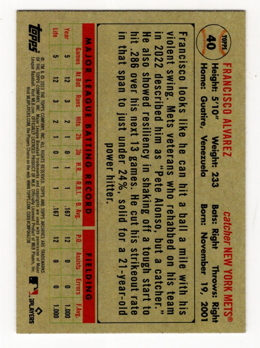 2023 Topps Archives Francisco Alvarez #40 Rookie (METS)
