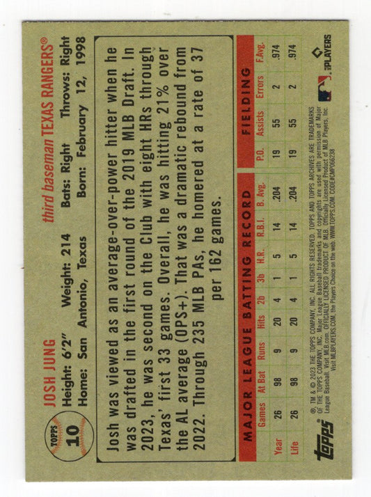 2023 Topps Archives Josh Jung #10 Rookie Card 1956 Design (Texas Rangers)