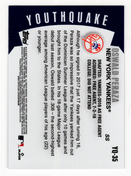 2023 Topps Chrome Oswald Peraza Youthquake Rookie RC #YQ-35 (YANKEES)