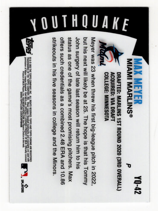 2023 Topps Chrome Max Meyer Youthquake Rookie CN#YQ-42 (Marlins)