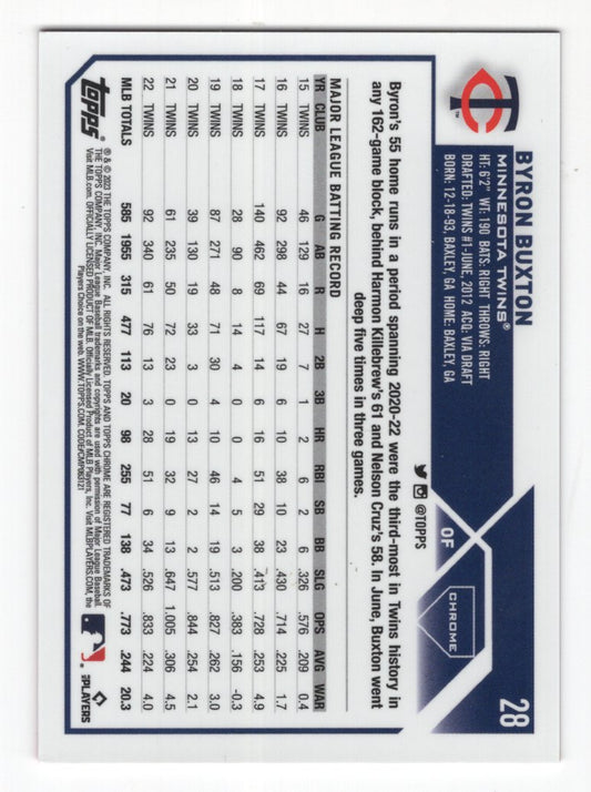 2023 Topps Chrome Byron Buxton #28 Magenta Refractor Parallel SP #'d /399 (Twins)