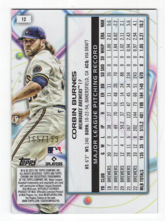 2023 Topps Chrome Cosmic Corbin Burnes Aqua Equinox Refractor #12 Serial #'d /199 (Brewers)
