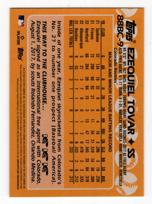 2023 Topps Chrome 35th Ann 1988 Retro Ezequiel Tovar Rookie #88BC-9 (Rockies)