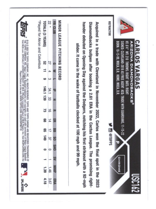2023 Topps Chrome Update Carlos Vargas #USC162 Rookie Refractor (Diamondbacks)