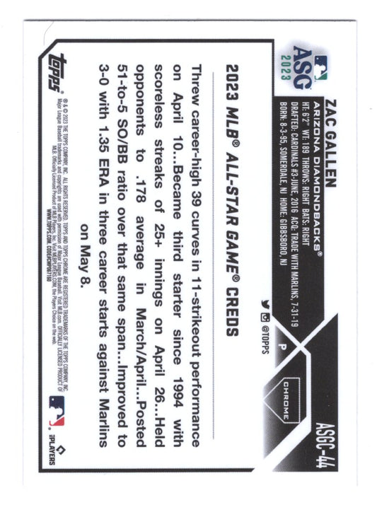 2023 Topps Chrome Update Zac Gallen All Star Game Refractor #ASGC44 (Diamondbacks)