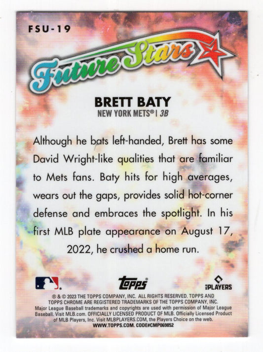2023 Topps Chrome Update Brett Baty #FSU-19 Future Stars Rookie (New York Mets)
