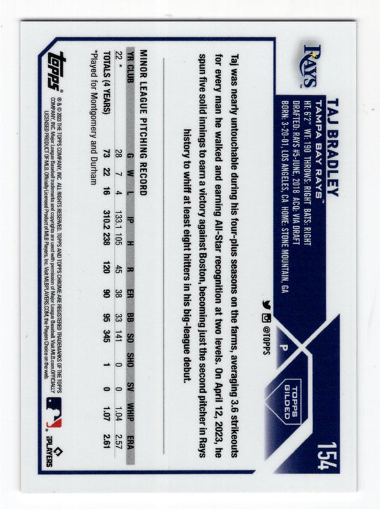 2023 Topps Chrome Gilded Taj Bradley Rookie #154 Gold Etch Refractor #'d /199 (Rays)
