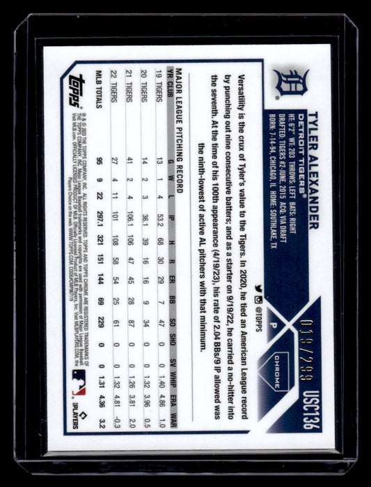 2023 Topps Chrome Update Magenta Purple Lava Lamp #USC136 Tyler Alexander #'d /299 (Tigers)