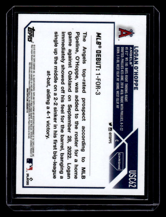 Logan O’Hoppe 2023 Topps Chrome Update Rookie Debut Refractor #USC62 (Angels)