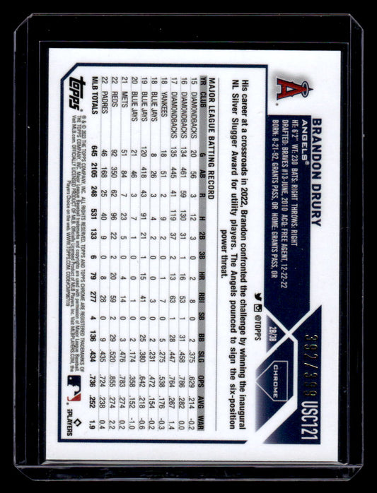 2023 Topps Chrome Update Brandon Drury #'d /399 Magenta Refractor #USC121 (Angels)