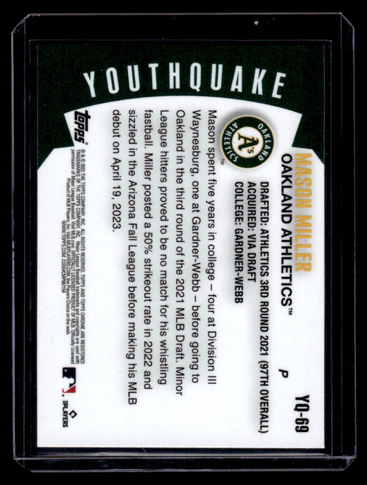 2023 Topps Chrome Update Mason Miller Youthquake Rookie Refractor YQ-69 (Oakland A's)