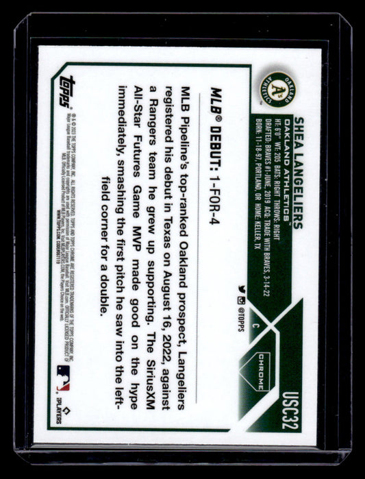 2023 Topps Chrome Update Shea Langliers Rookie Card #USC32 Refractor (Oakland A's)