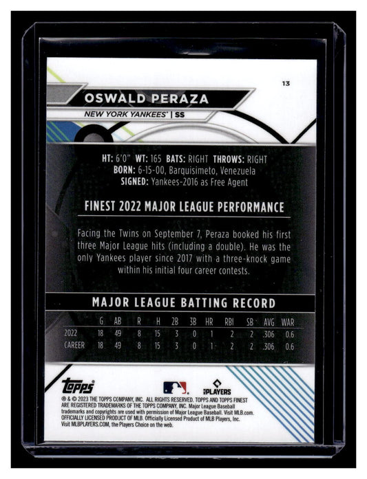 2023 Topps Finest #13 Oswald Peraza Rookie RC (New York Yankees)