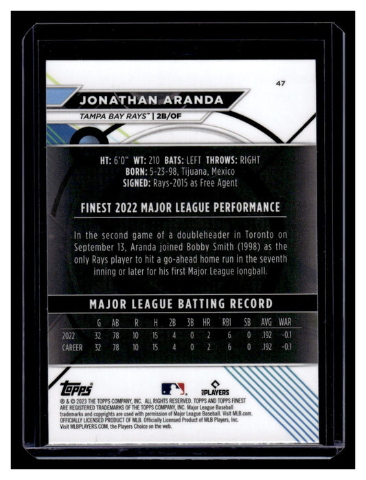 2023 Topps Finest #47 Jonathan Arada Rookie RC (Tampa Bay Ray)
