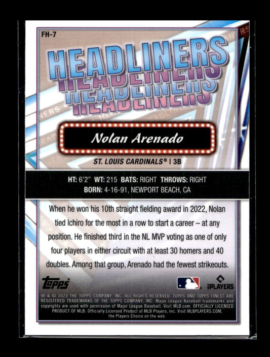 2023 Finest Finest Headliners #FH7 Nolan Arenado (St. Louis Cardinals)