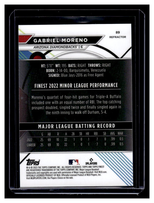 2023 Topps Finest #89 Gabriel Moreno Rookie RC (Arizona Diamondbacks)