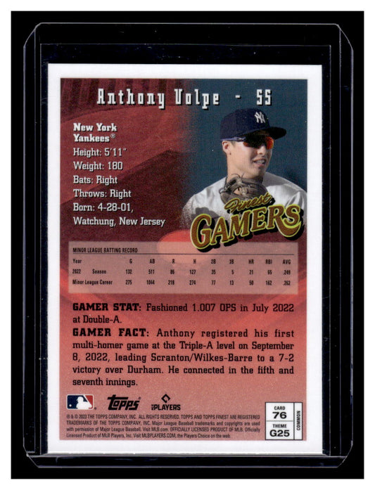 2023 Topps Finest #76 "GAMERS" Anthony Volpe Rookie RC (New York Yankees)
