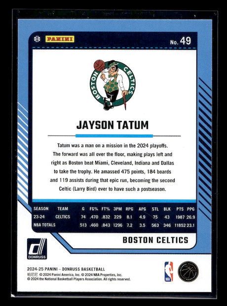 2024-25 Donruss Holo Green Laser #49 Jayson Tatum (Boston Celtics)
