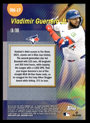 2026 Topps Titans of The Game #TOG17 Vladimir Guerrero Jr. (Toronto Blue Jays)