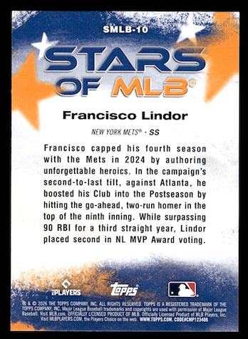 2026 Topps Stars of MLB #SMLB10 Francisco Lindor (New York Mets)
