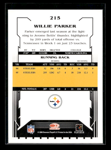 2006 Score #215 Willie Parker (Pittsburgh Steelers)