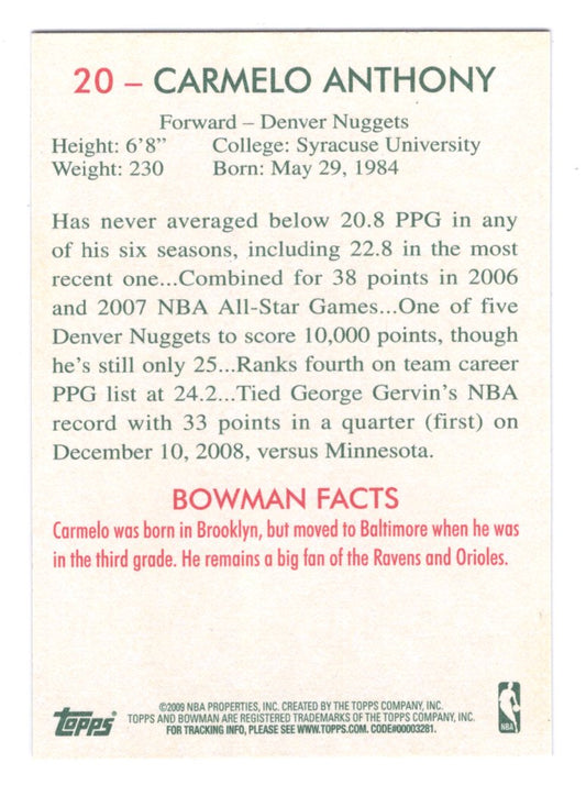 2009-10 Bowman '48 Carmelo Anthony #20 (Denver Nuggets)