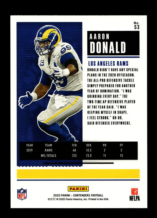 2020 Panini Contenders #53 Aaron Donald (Los Angeles Rams)