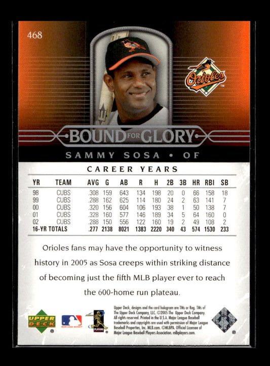 2005 Upper Deck #468 Sammy Sosa (Baltimore Orioles)