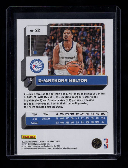2022-23 Donruss Holo Green Laser #22 De'Anthony Melton (Philadelphia 76ers)