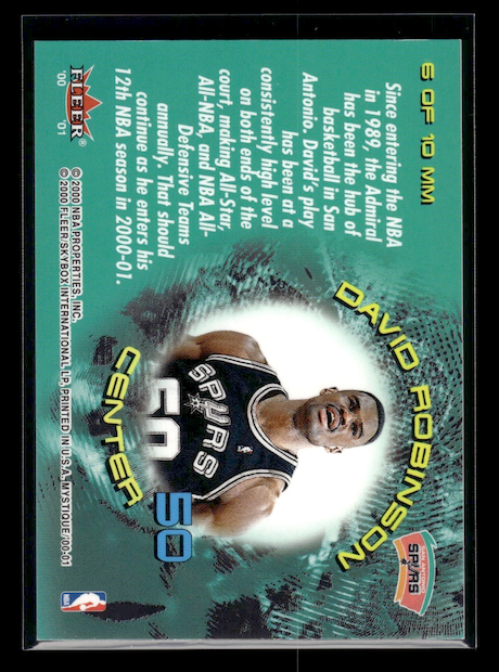 2000-01 Fleer Mystique Middle Men #6 David Robinson (San Antonio Spurs)